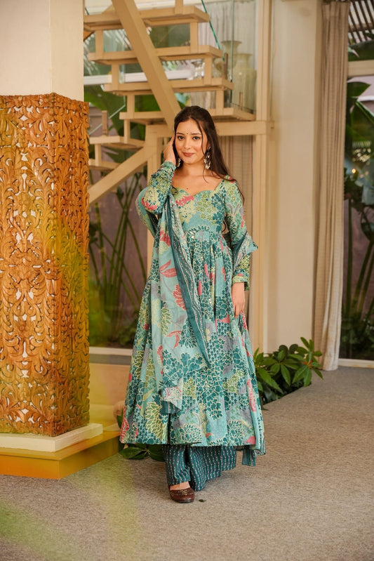 Absolutely loving this outfit!💚 The floral prints, soft muslin fabric, and vibrant dupatta make it so elegant and comfortable. Feels like a perfect start for 2025!