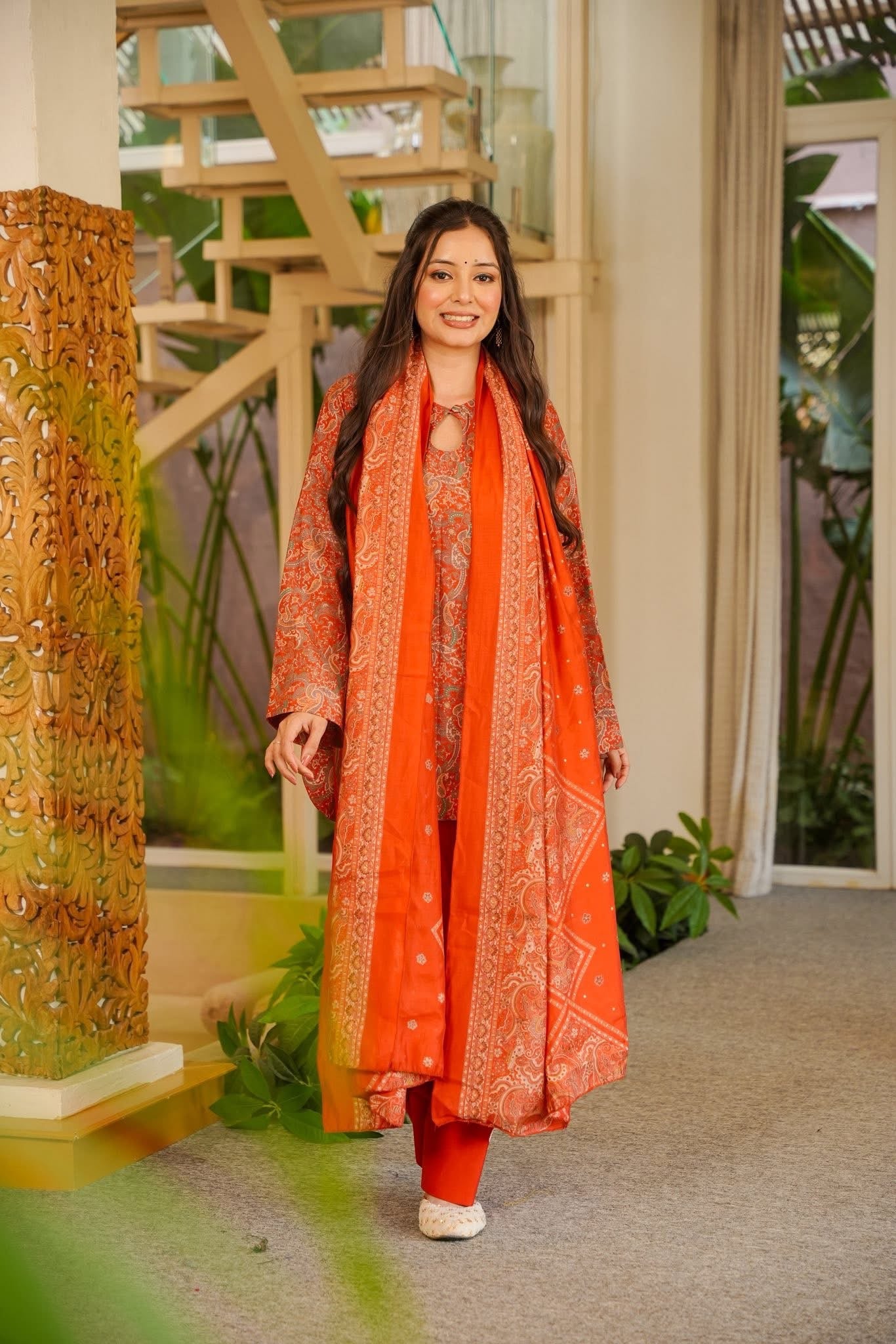 Wore this suit in Kashi, and it felt so elegant and comfortable! It was beyond my expectations. The soft fabric and the color is just perfect. 😍😍Got so many compliments—truly a beautiful outfit!