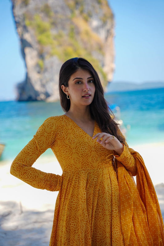 Sold outAvani Mustard Unstitched Suit Set