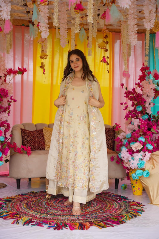 Elegant Ecru Straight Fusion Wear 3 Piece Set