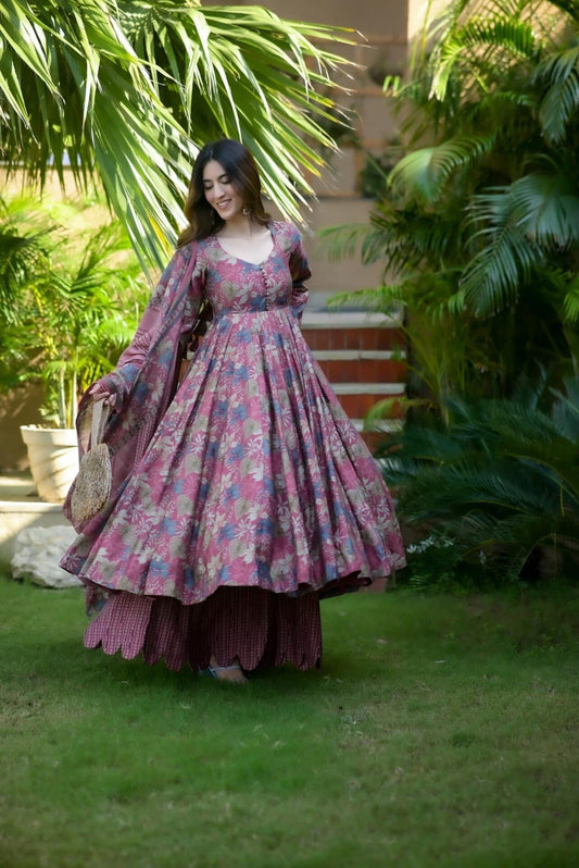 Budding Purple Cotton Anarkali Suit Set