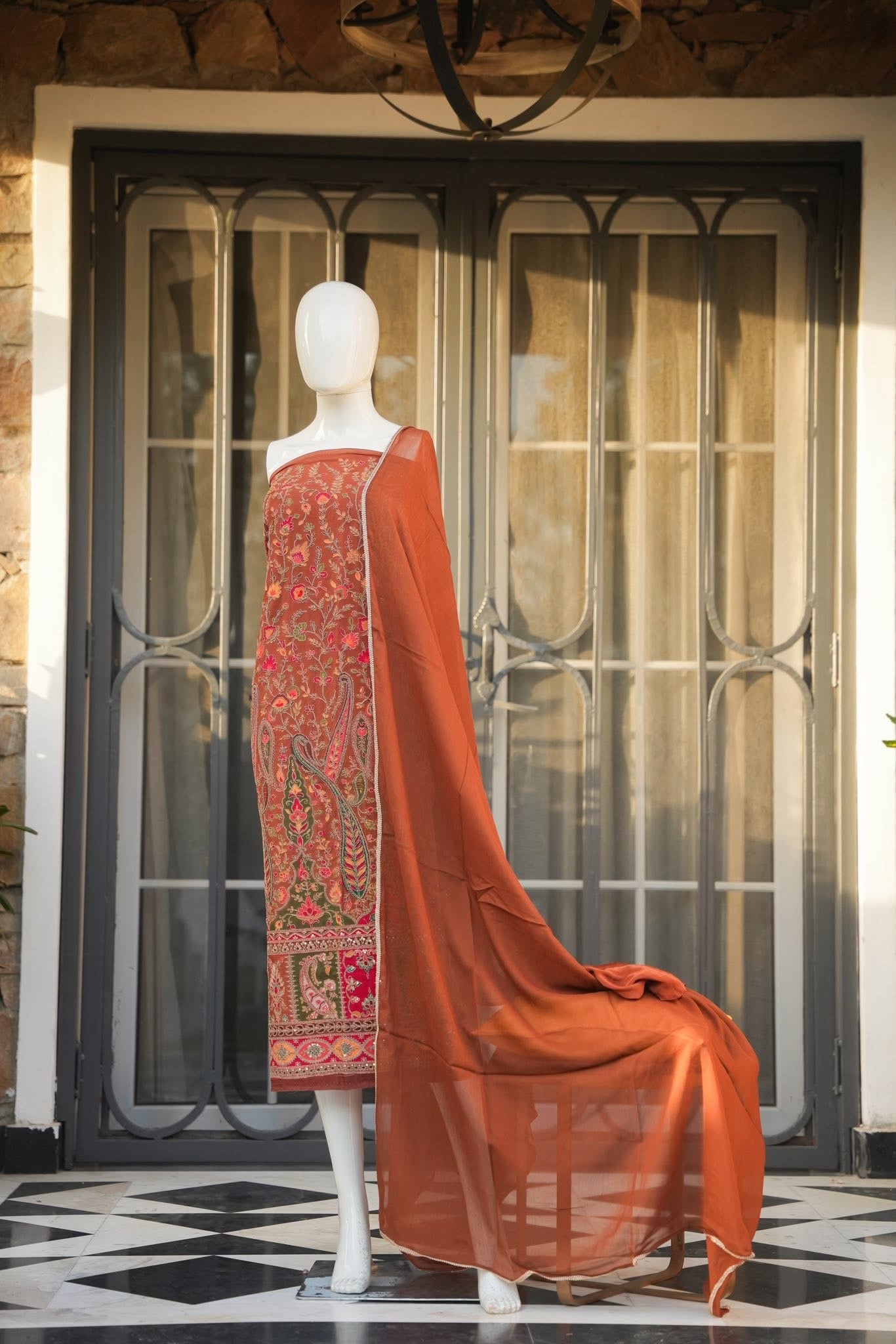 Indulge in elegance with a 2.5-meter unstitched top and bottom, perfectly complemented by a 2.5-meter coordinated dupatta