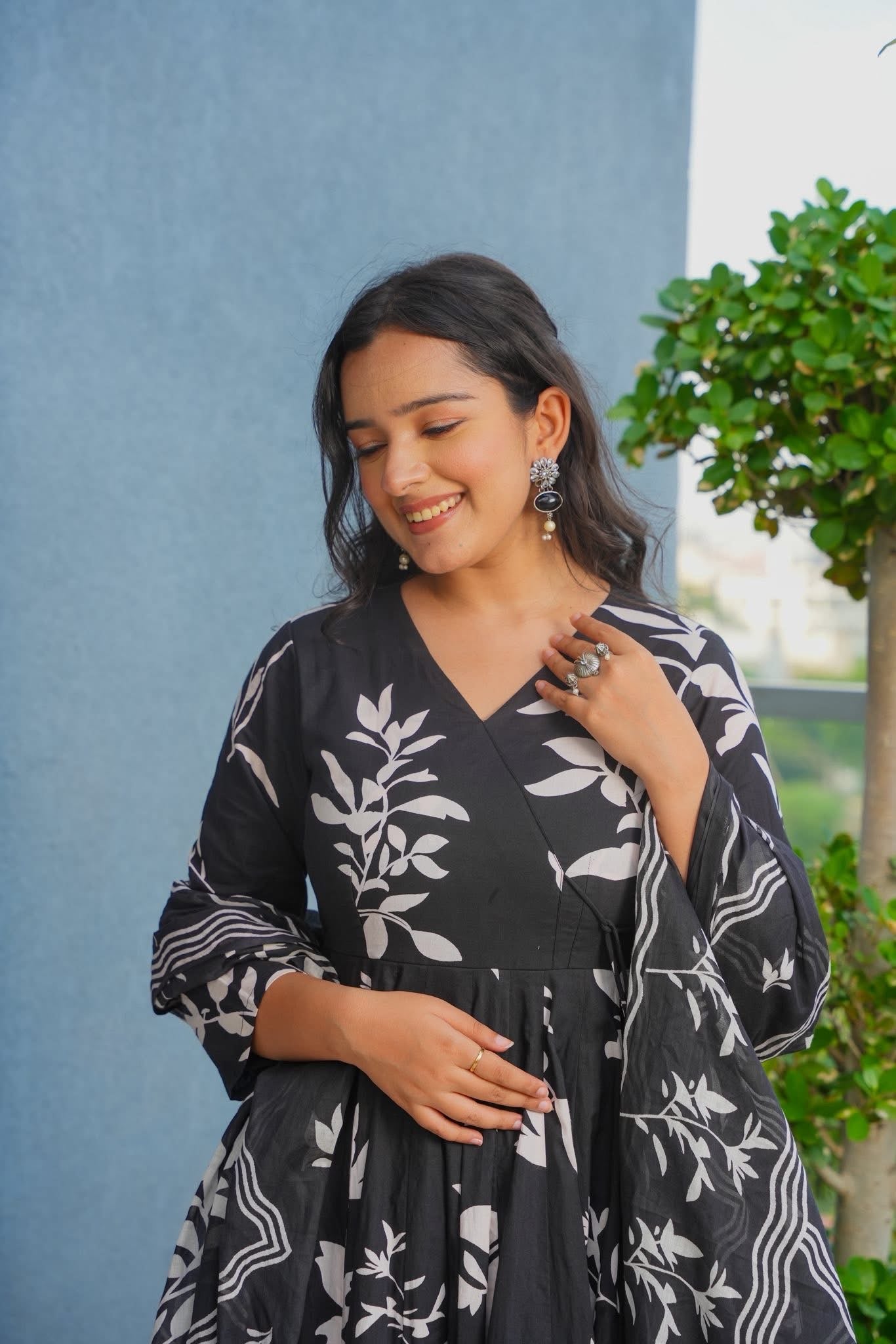 Dark Haven Cotton Anarkali Suit Set