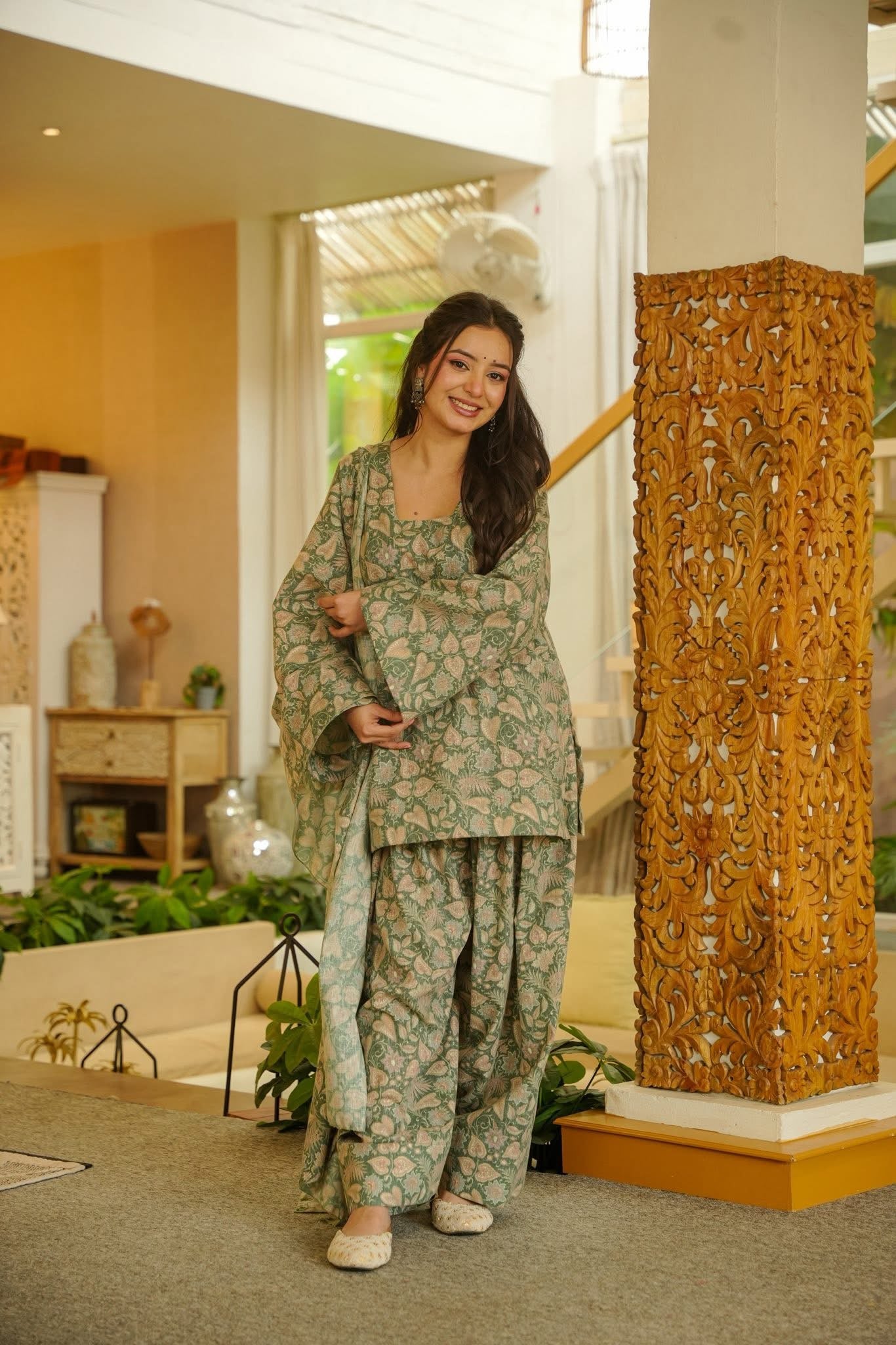 Absolutely loving this outfit!💚 The floral prints, soft muslin fabric, and vibrant dupatta make it so elegant and comfortable. Feels like a perfect start for 2025!