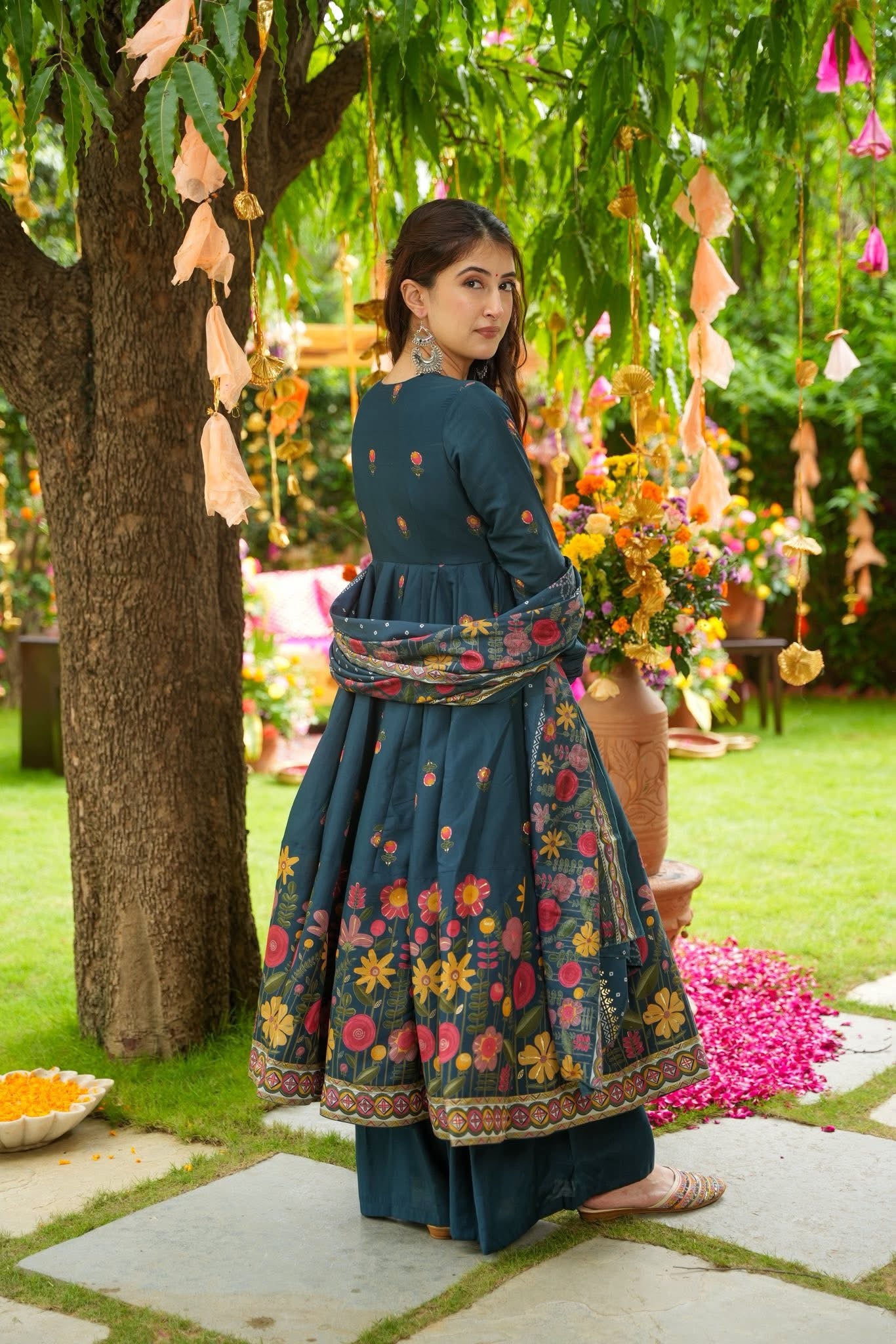 Absolutely loving this outfit!💚 The floral prints, soft muslin fabric, and vibrant dupatta make it so elegant and comfortable. Feels like a perfect start for 2025!