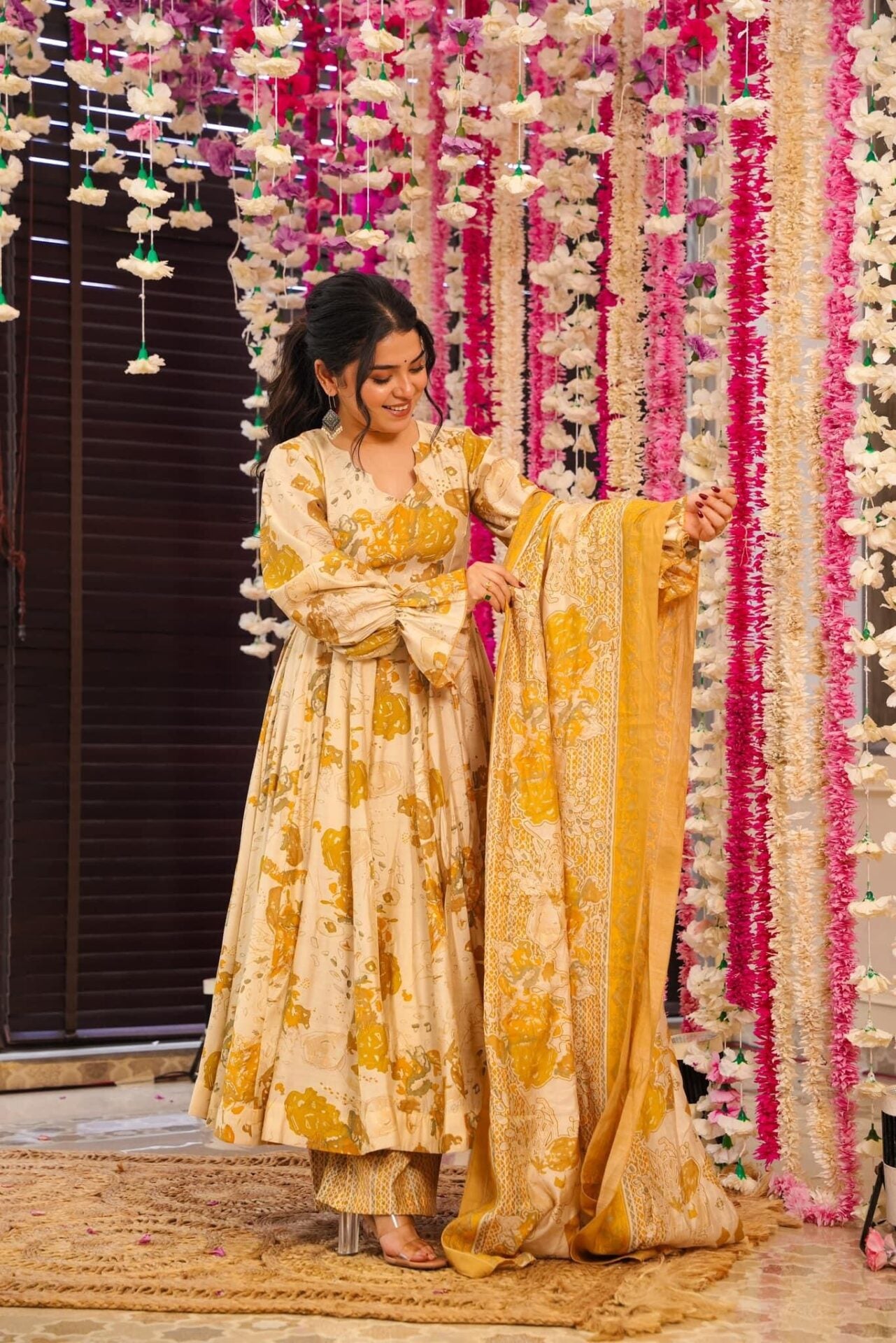 Absolutely loving this outfit!💚 The floral prints, soft muslin fabric, and vibrant dupatta make it so elegant and comfortable. Feels like a perfect start for 2025!