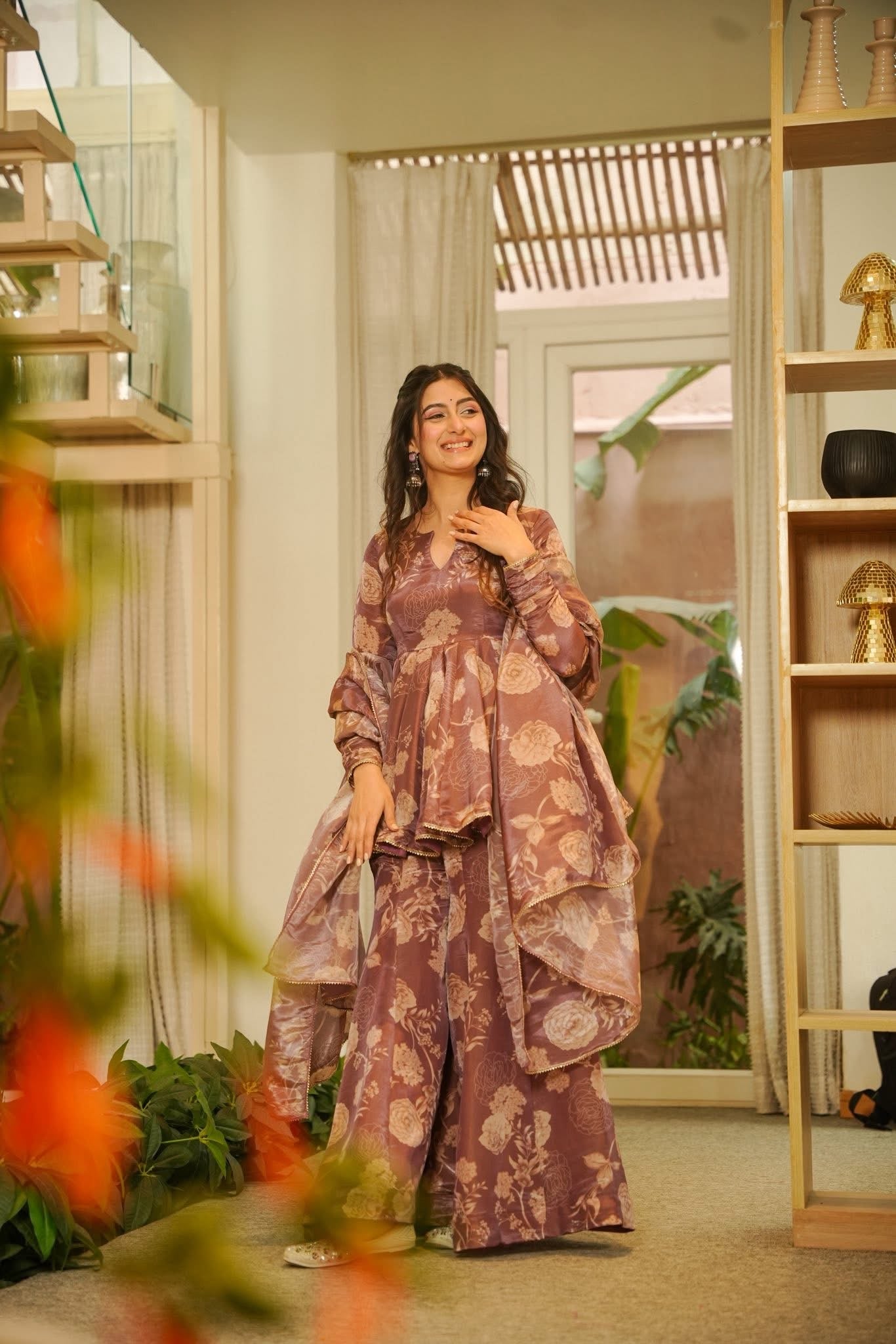 Utsavi Brown Cosmos Sharara Set
