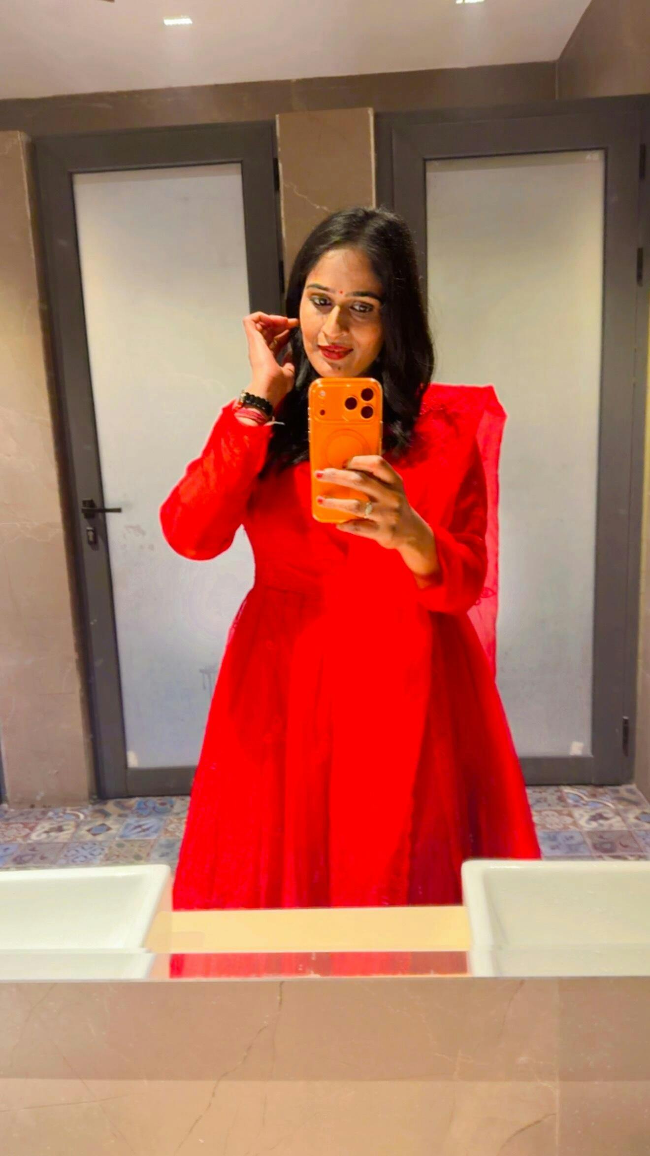 I wore a beautiful red outfit from Idaho for the inauguration of my salon ❤It was the perfect choice—stylish, comfortable, and made me feel confident on such a special day. Highly recommend!